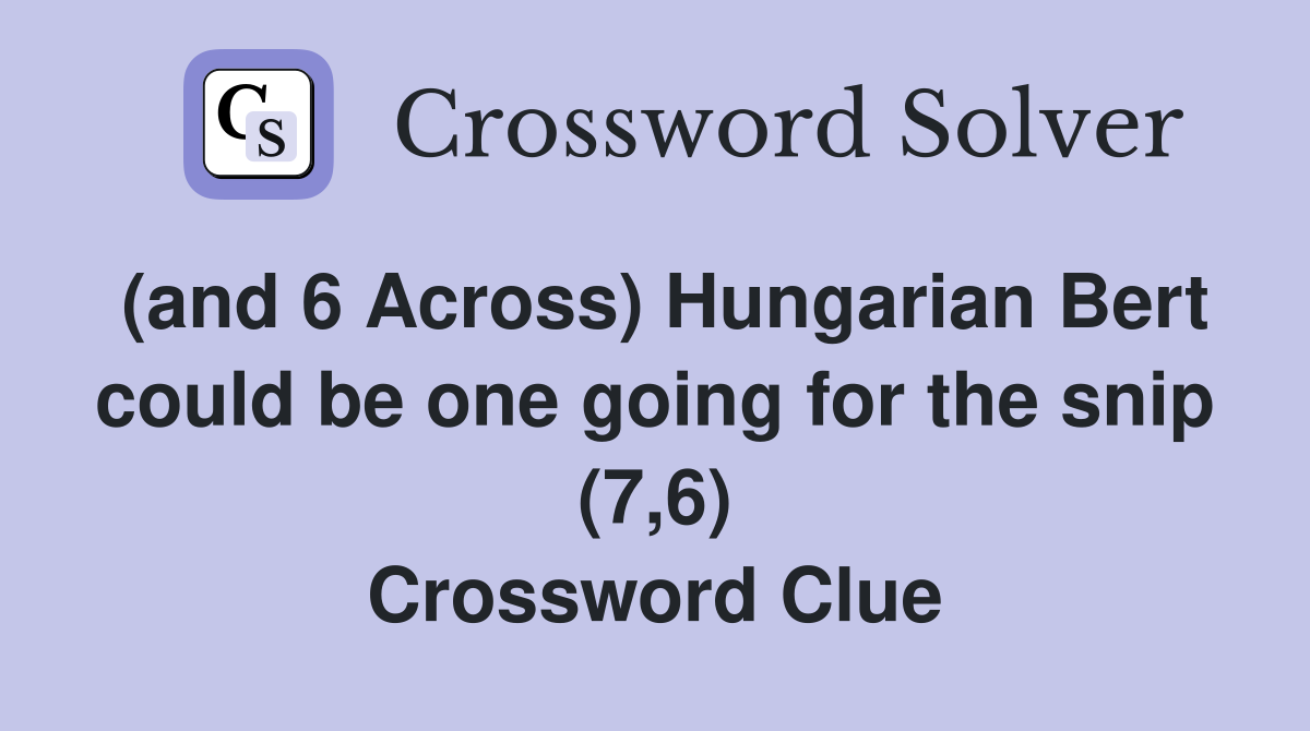 (and 6 Across) Hungarian Bert could be one going for the snip (7 6