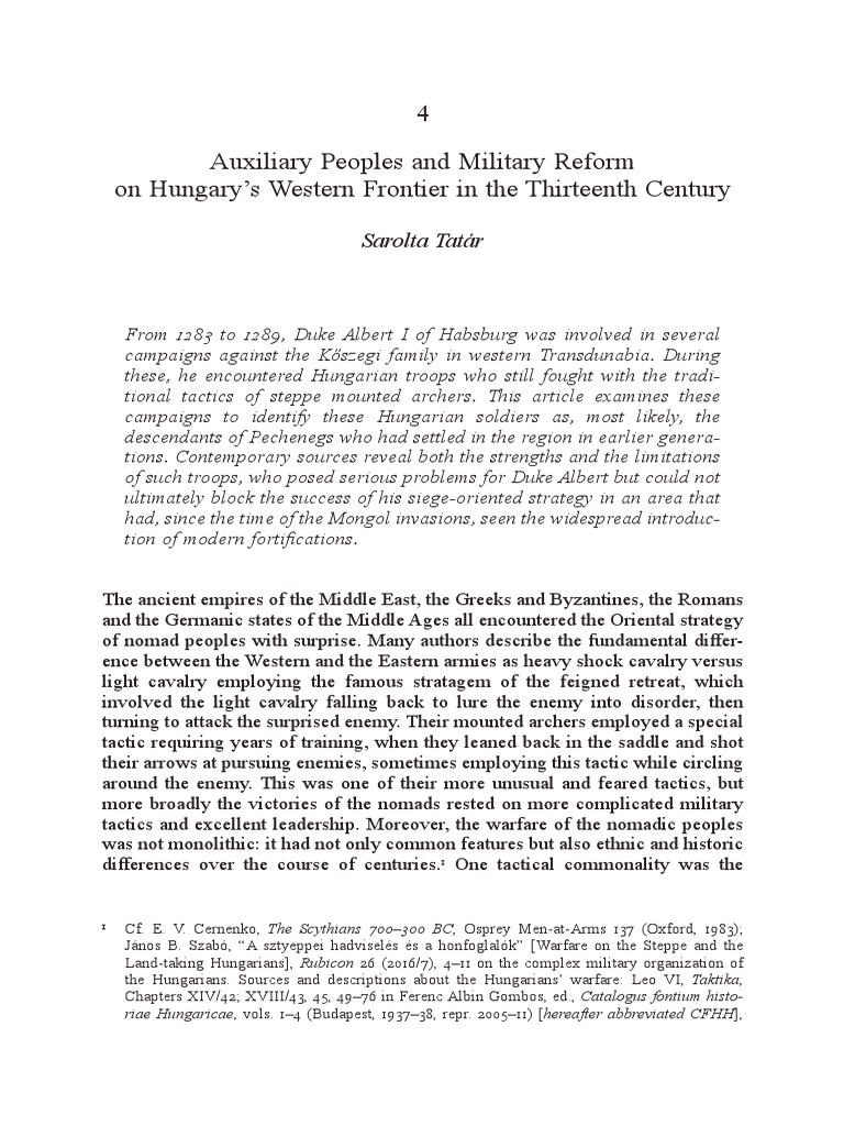 Auxiliary Peoples and Military Reform On Hungarys Western Frontier in