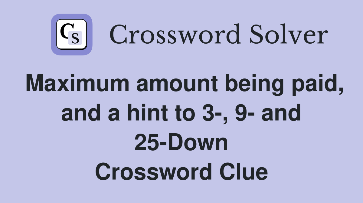 Maximum amount being paid and a hint to 3 9 and 25 Down Crossword