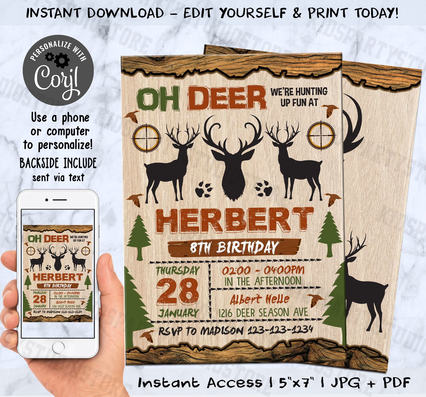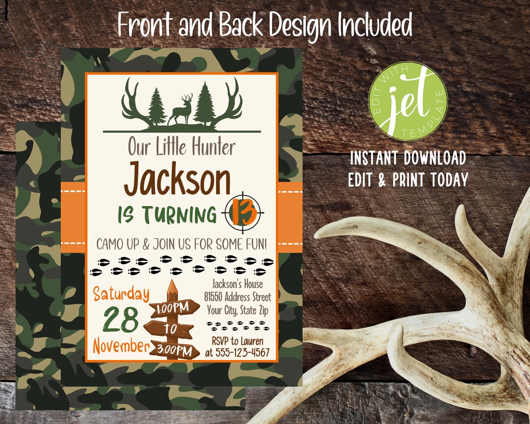 Editable Hunting Birthday Invitation Camo Birthday Invitation Deer