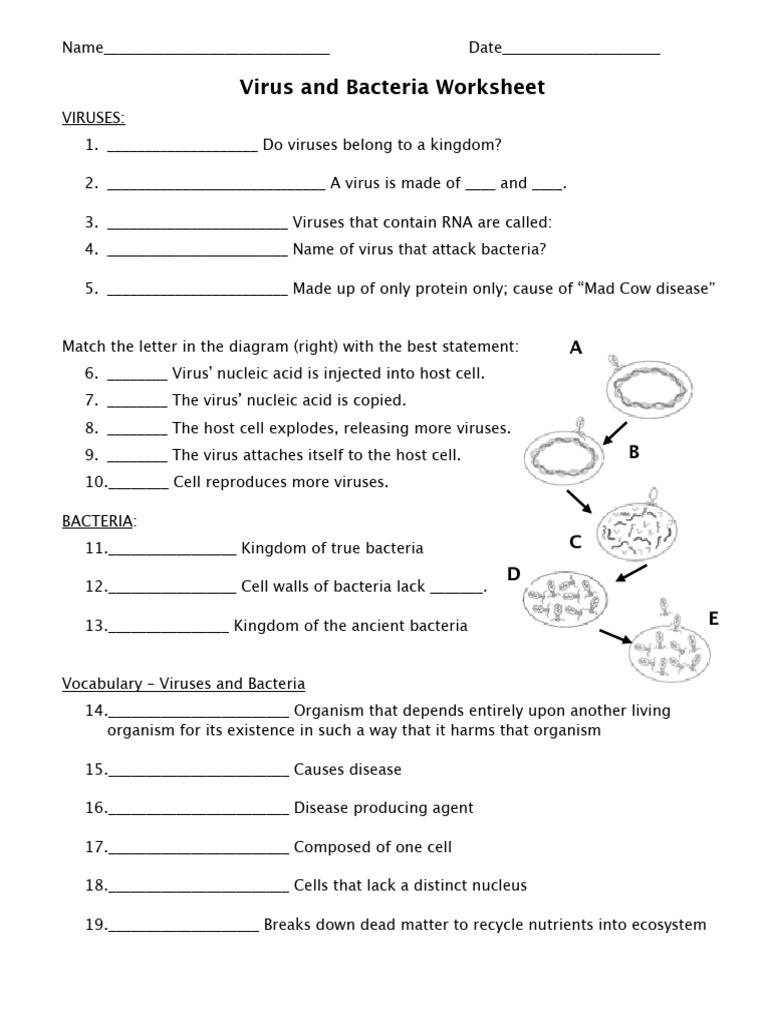 BACTERIA Virus and Bacteria Worksheet PDF Virus Bacteria