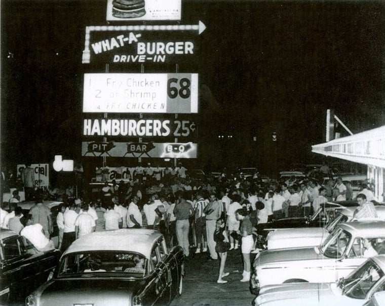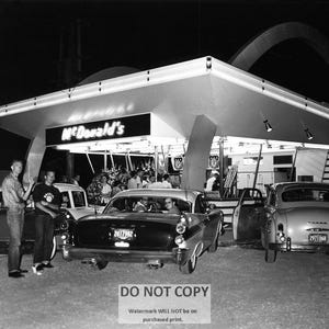 Various pictures of fast food restaurants from the 1950s and 1960s