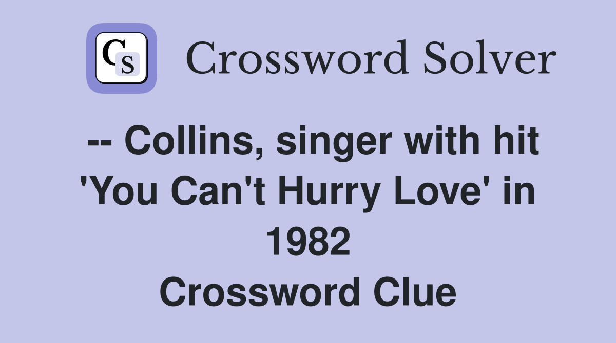 Collins singer with hit You Can t Hurry Love in 1982 Crossword