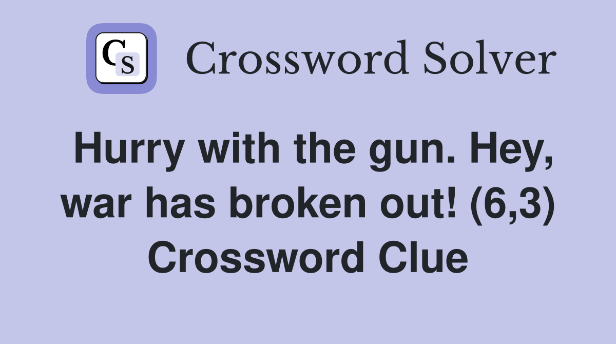 Hurry with the gun Hey war has broken out (6 3) Crossword Clue