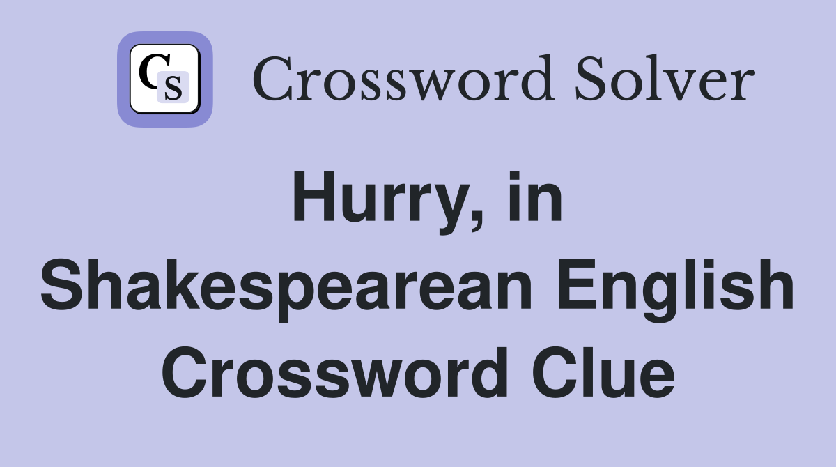 Hurry in Shakespearean English Crossword Clue Answers Crossword Solver