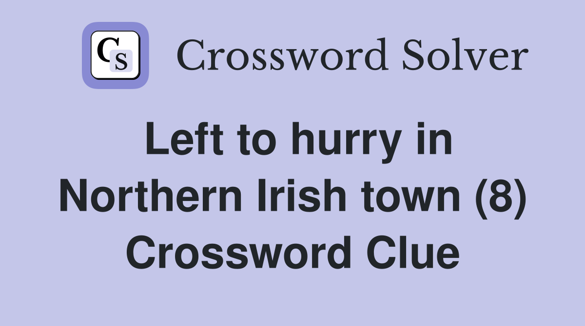 Left to hurry in Northern Irish town (8) Crossword Clue Answers
