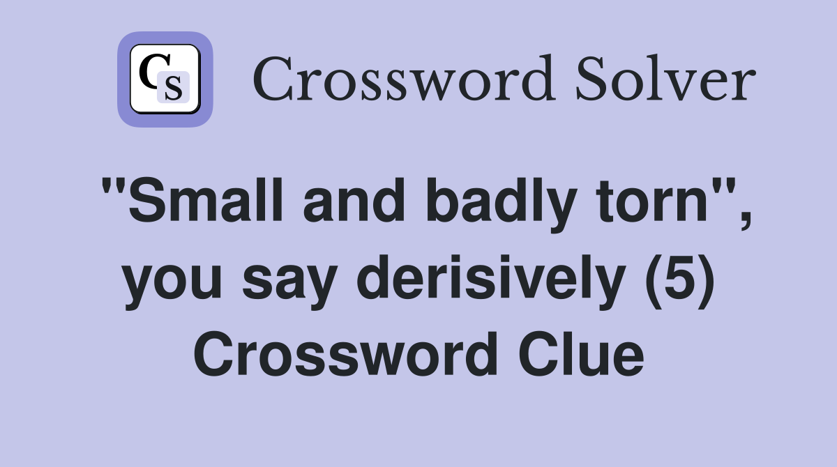 quot Small and badly torn quot you say derisively (5) Crossword Clue Answers