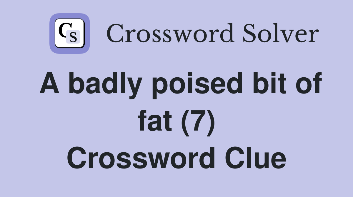A badly poised bit of fat (7) Crossword Clue Answers Crossword Solver