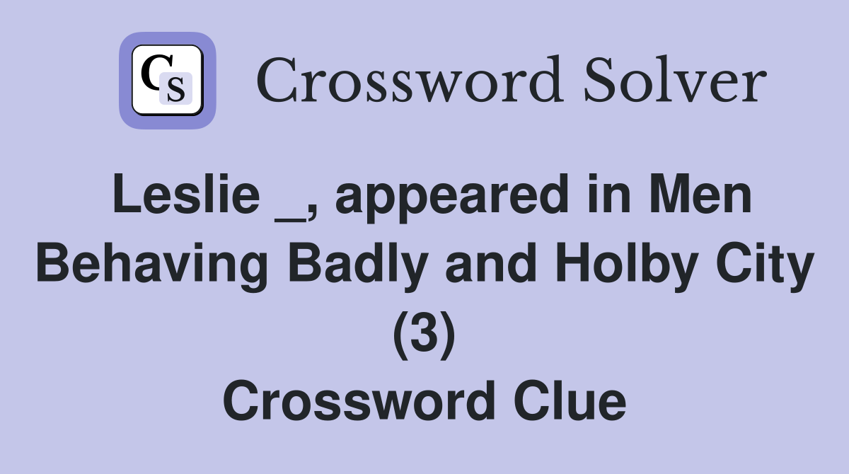Leslie appeared in Men Behaving Badly and Holby City (3) Crossword
