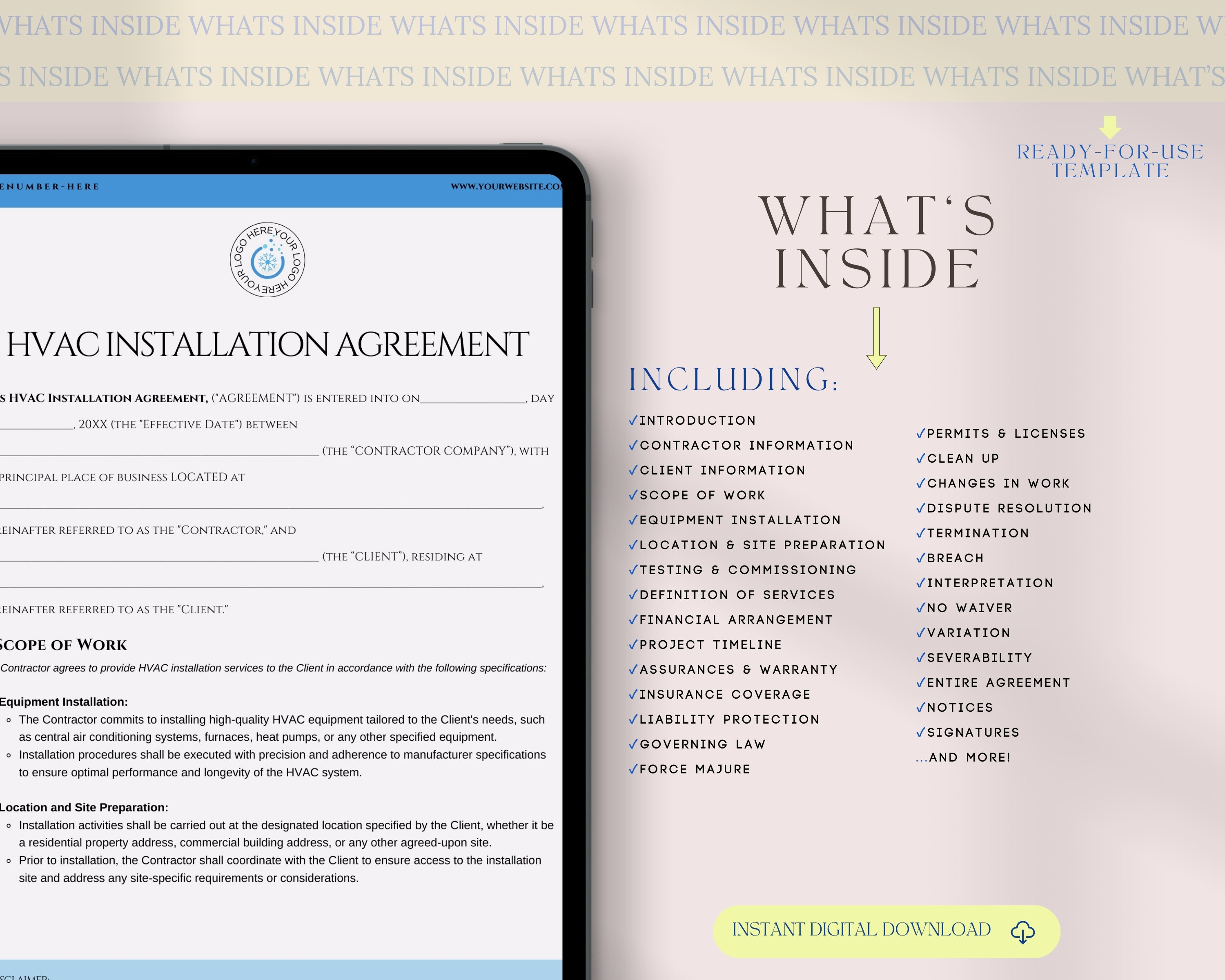 Editable HVAC Installation Contract HVAC Service Agreement HVAC