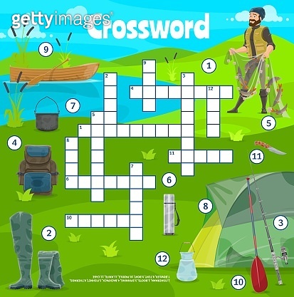 Fishing sport and camping items crossword puzzle 이미지 (1449539626) 게티이미지뱅크
