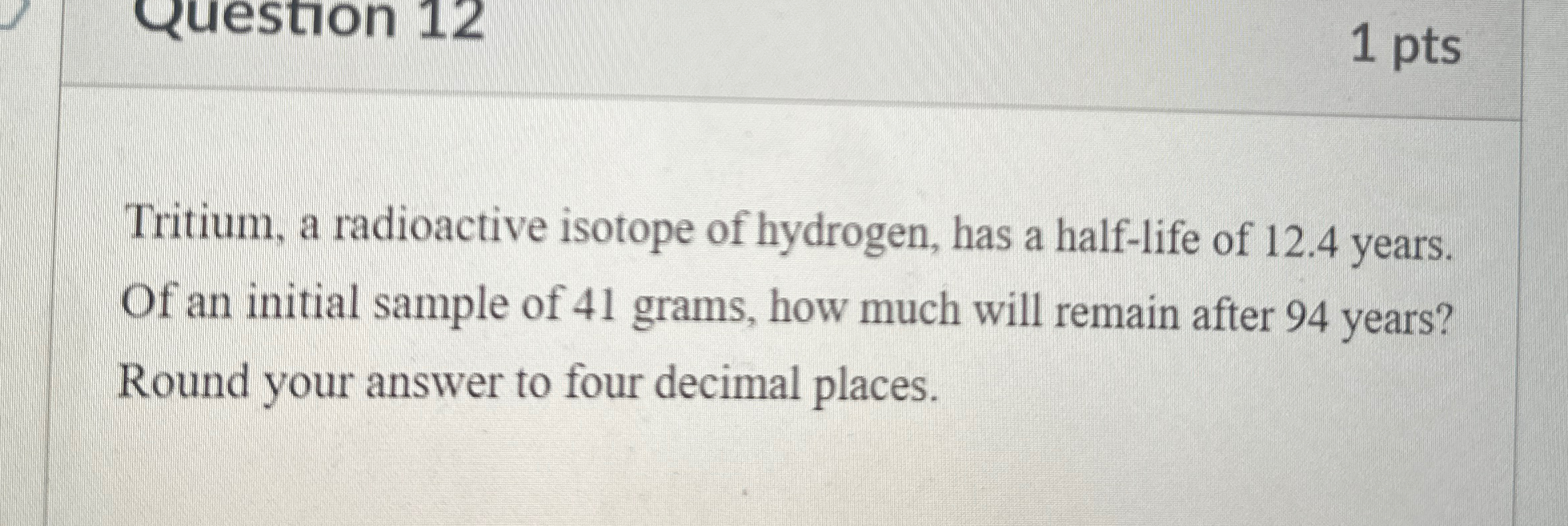 Solved 1 The radioactive isotope hydrogen 3 has a half life Chegg com