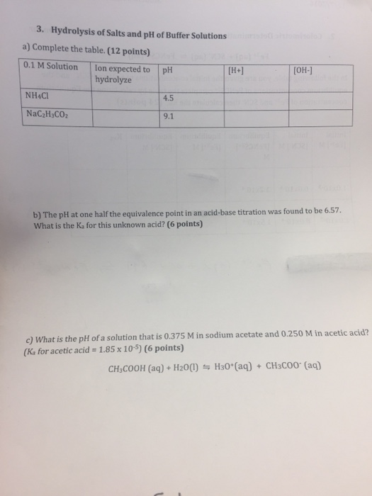 Solved Hydrolysis of Salts and pH of Buffer Solutions a) Chegg com