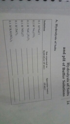 Solved Hydrolysis of Salts 24 and pH of Buffer Solutions A Chegg com