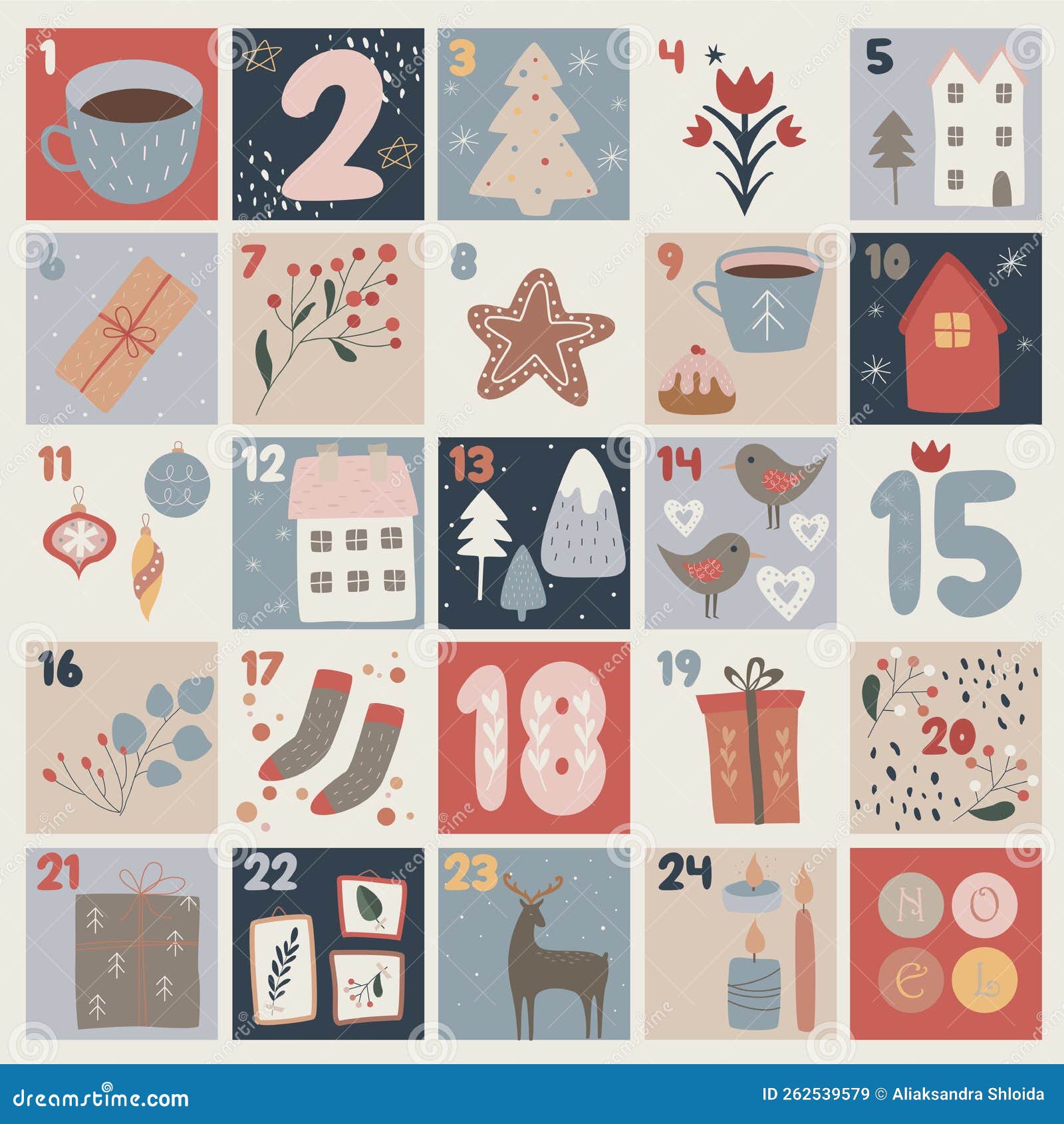 Hygge Advent Calendar Cozy Hygge Stuff Xmas Numbers Stock Vector