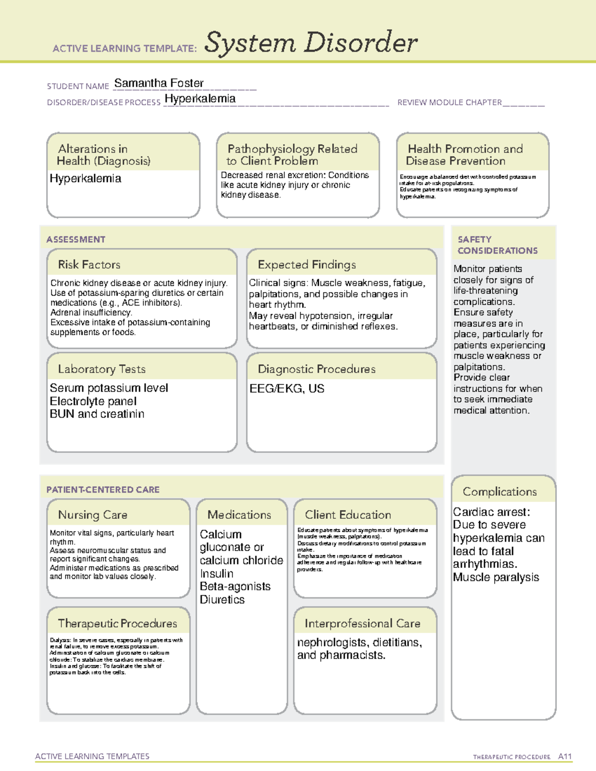 Active Learning Template: System Disorder Hyperkalemia (A11) Studocu