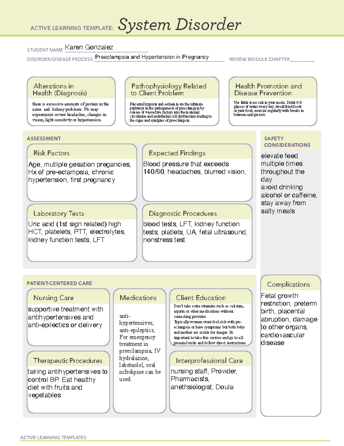Active Learning Template: System Disorder Hypertension in Pregnancy