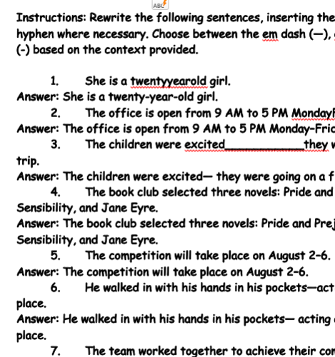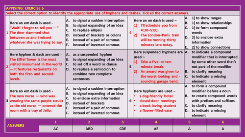 HYPHENS AND DASHES PUNCTUATION: WORKSHEETS WITH ANSWERS