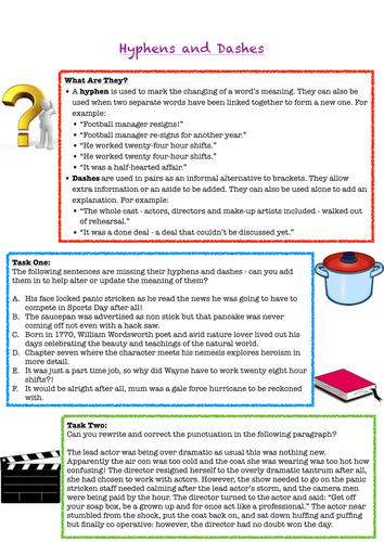 Dashes and Hyphens Teaching Pack Resources for Teachers Teacher
