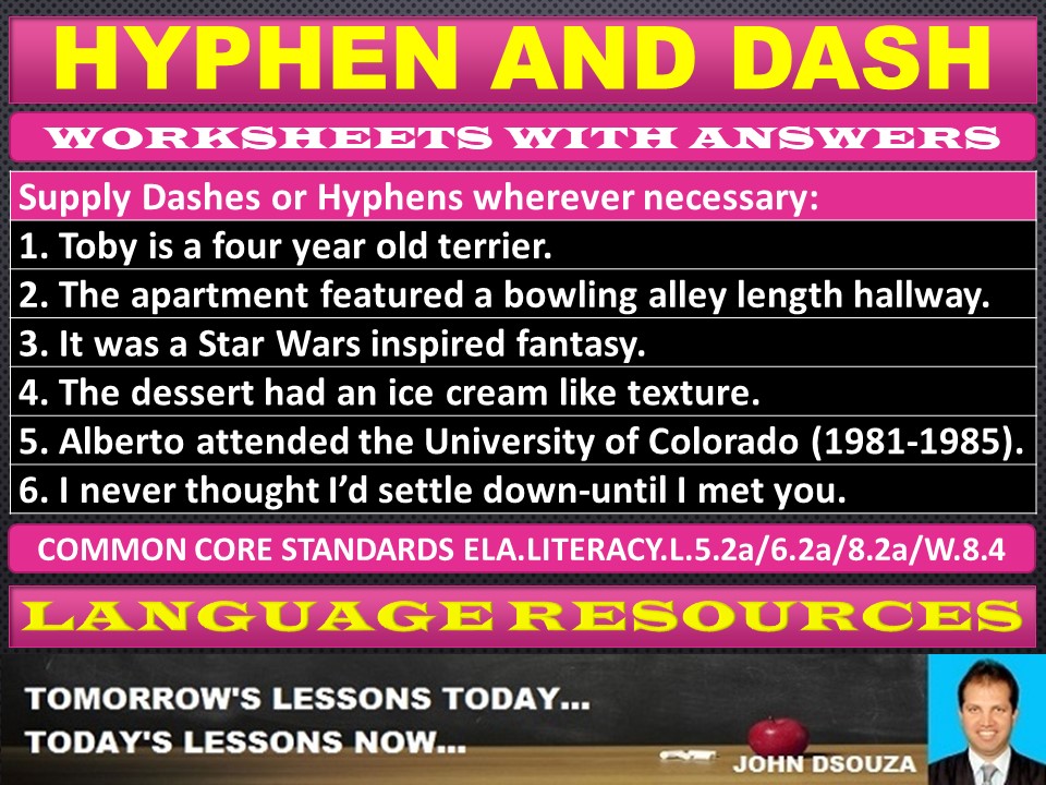 Here are some of the images for Hyphens And Dashes Worksheet that we found in our website database.