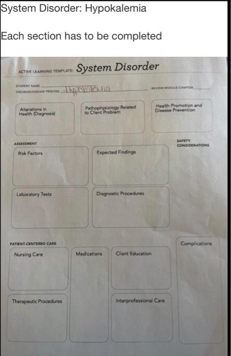 Solved System Disorder: Hypokalemia Each section has to be Chegg com