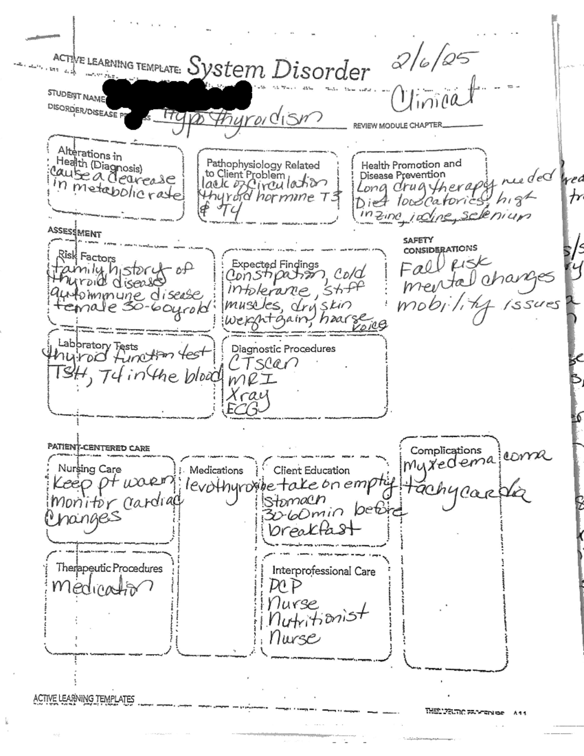 Hypothyroid sheet 1 ATI hypothyriod ACTIVE LEARNING TEMPLATES