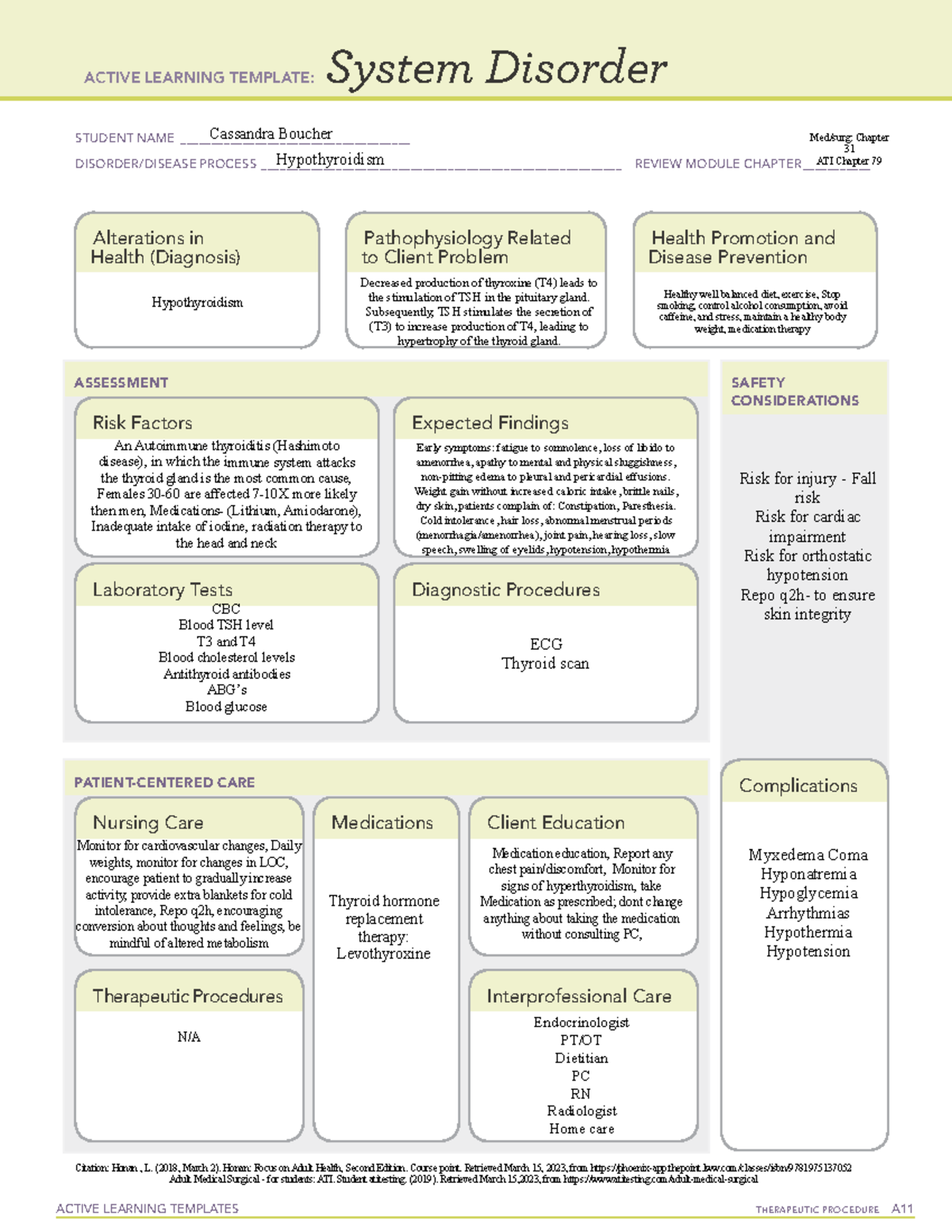 ATI system disorder Hypothyroidism ACTIVE LEARNING TEMPLATES System
