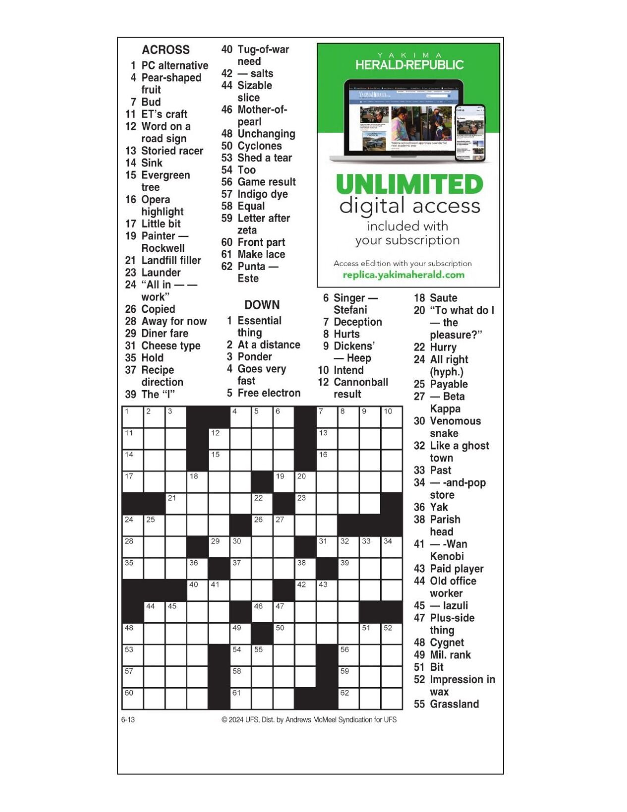 AM Crossword: June 13 2024 Crosswords yakimaherald com