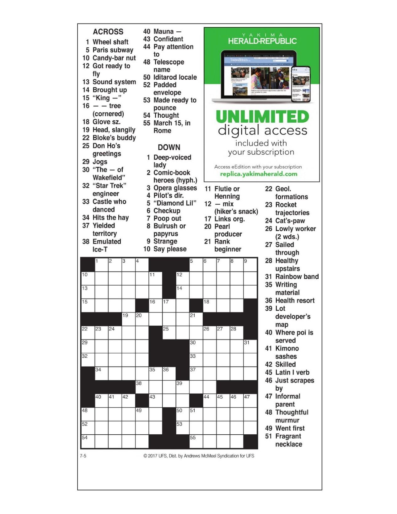 AM Crossword: July 5 2023 Crosswords yakimaherald com