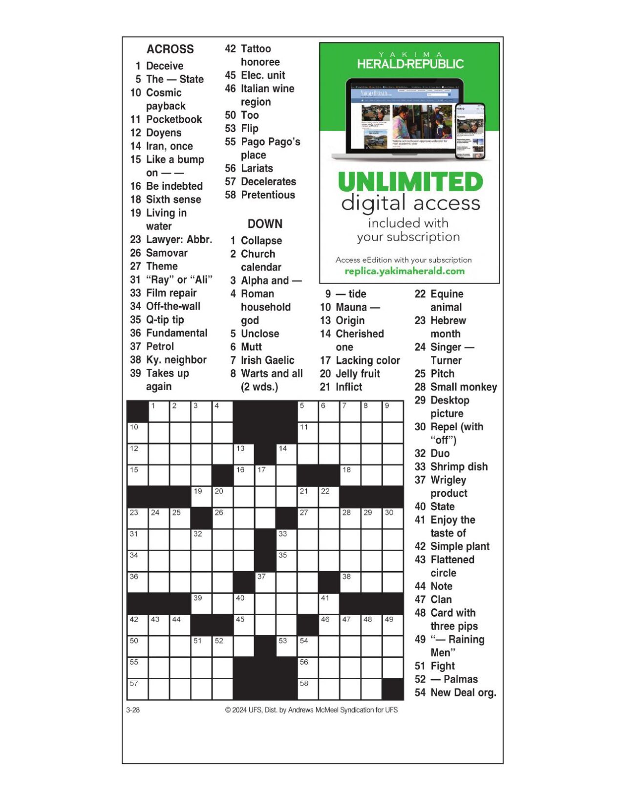 AM Crossword: March 28 2024 Crosswords yakimaherald com