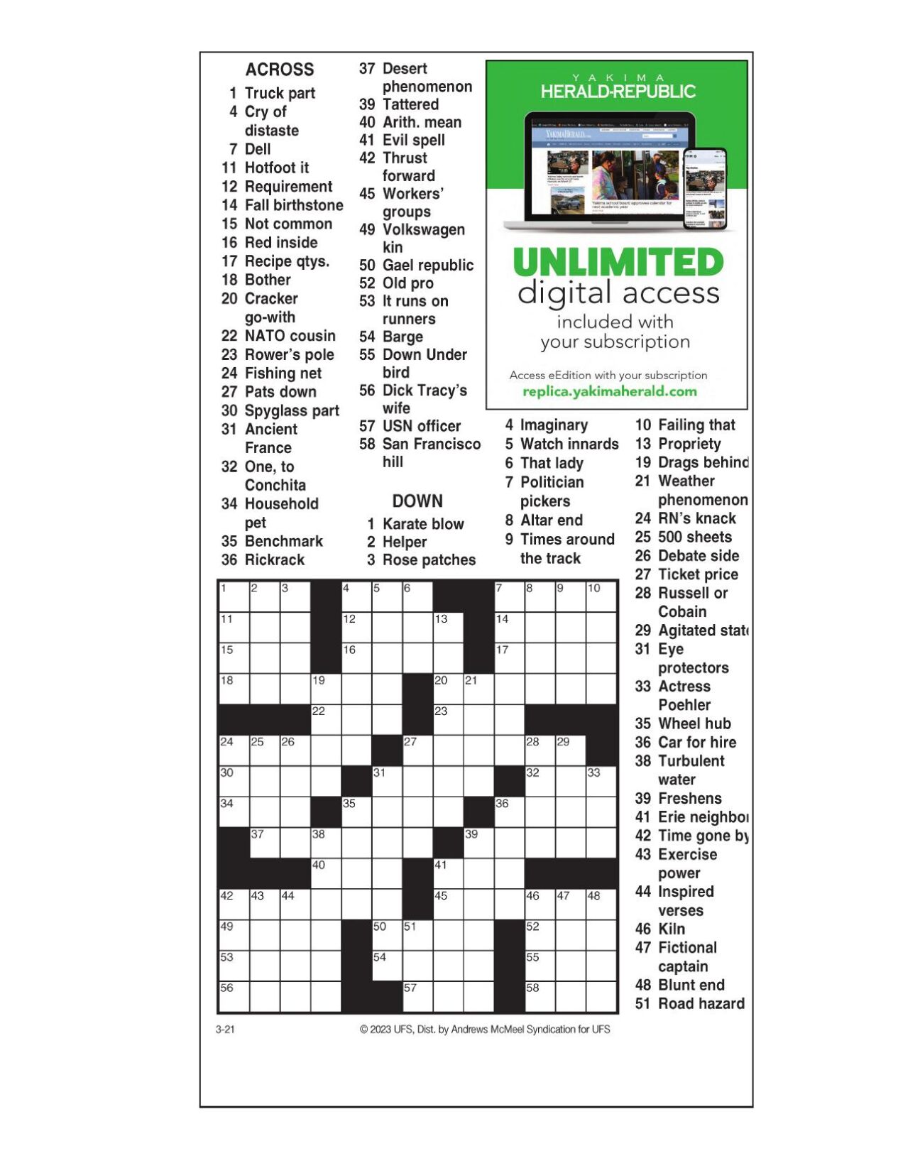 AM Crossword: March 21 2023 Crosswords yakimaherald com