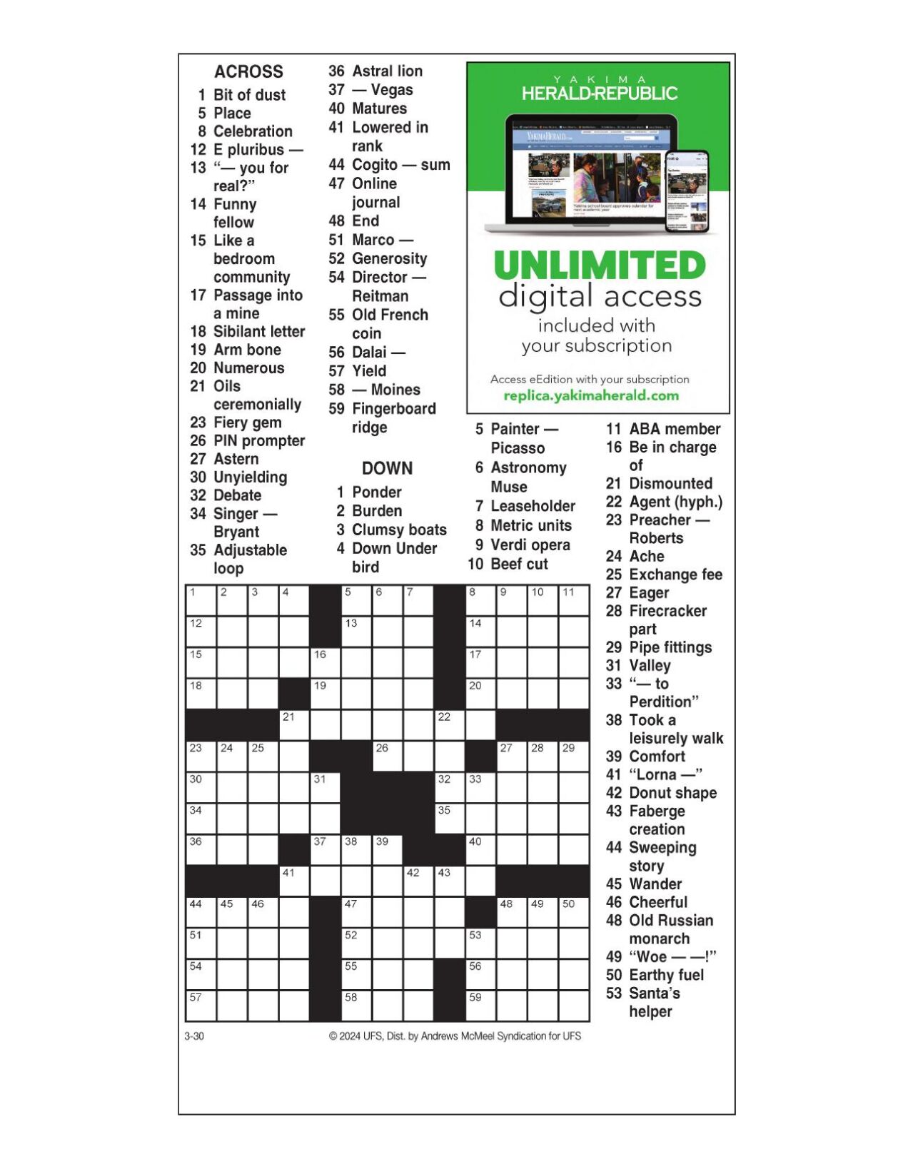 AM Crossword: March 30 2024 Crosswords yakimaherald com