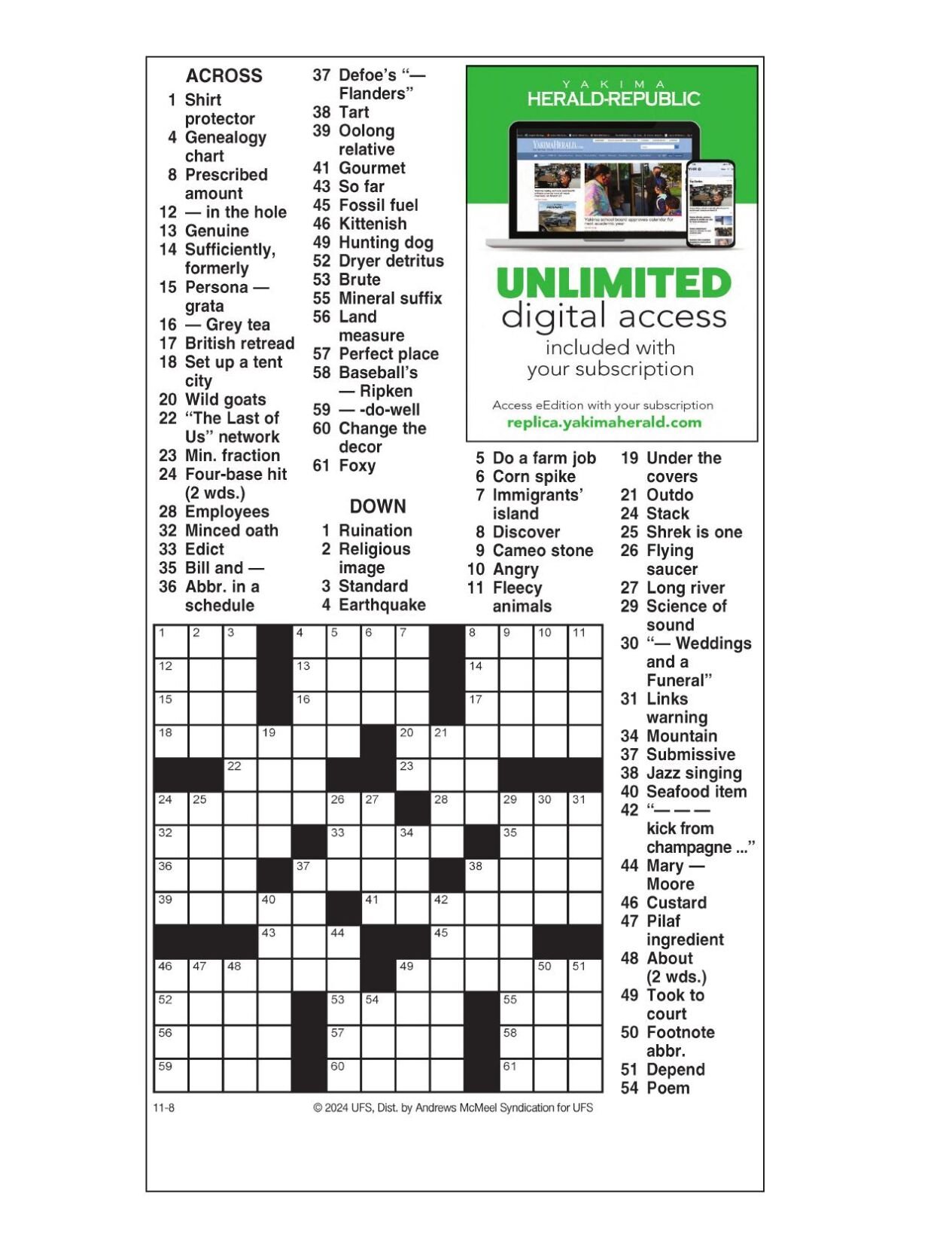 AM Crossword: Nov 8 2024 Crosswords yakimaherald com