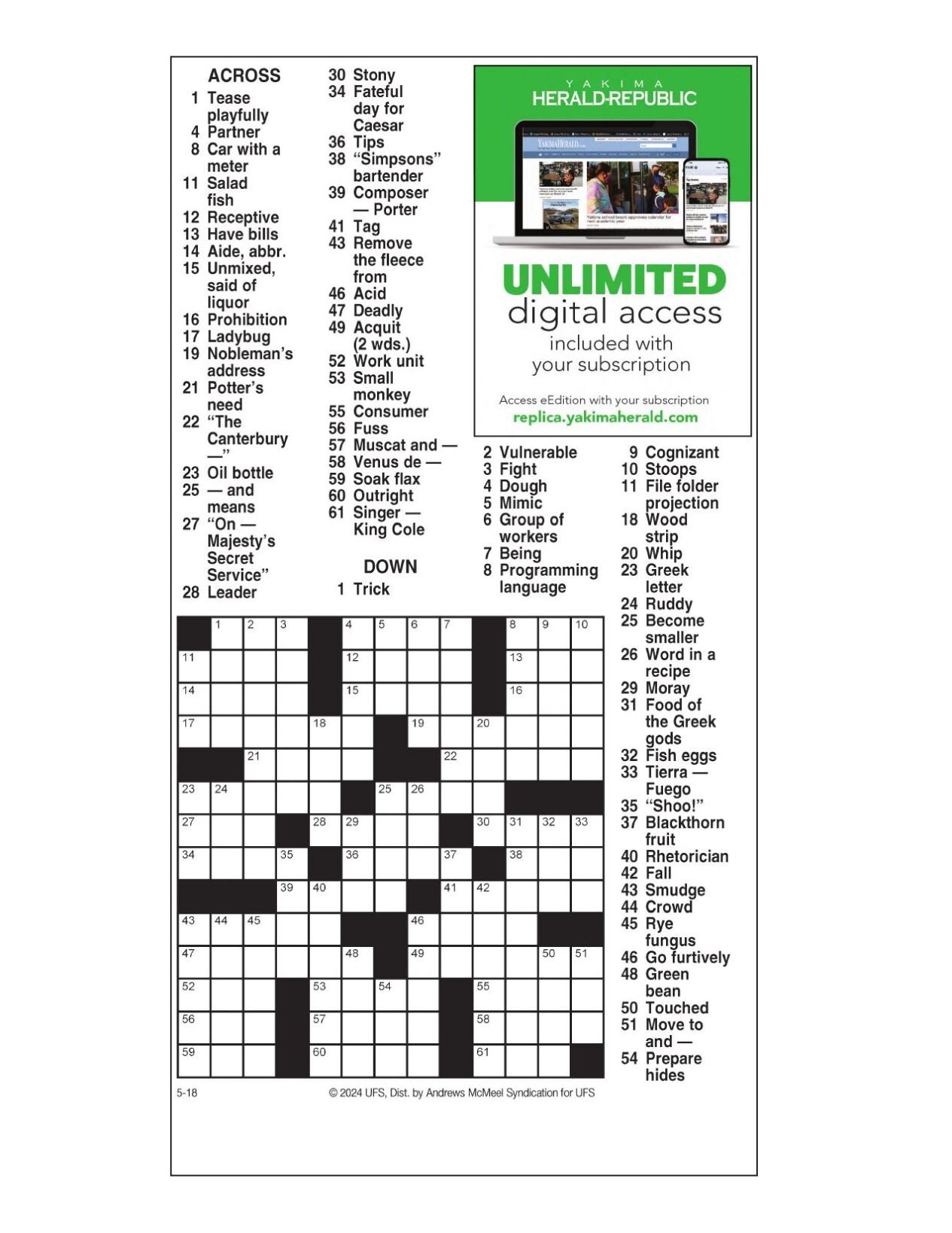 AM Crossword: May 18 2024 Crosswords yakimaherald com