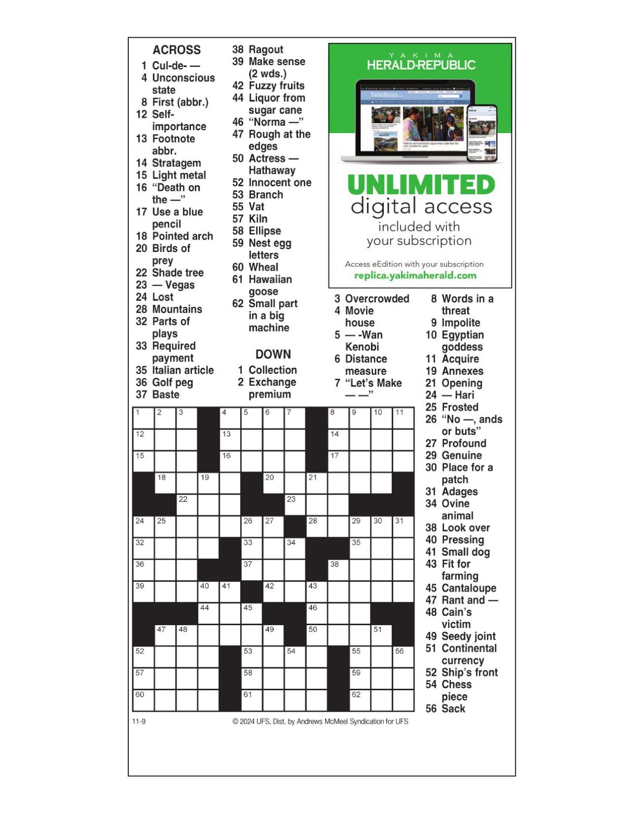 AM Crossword: Nov 9 2024 Crosswords yakimaherald com