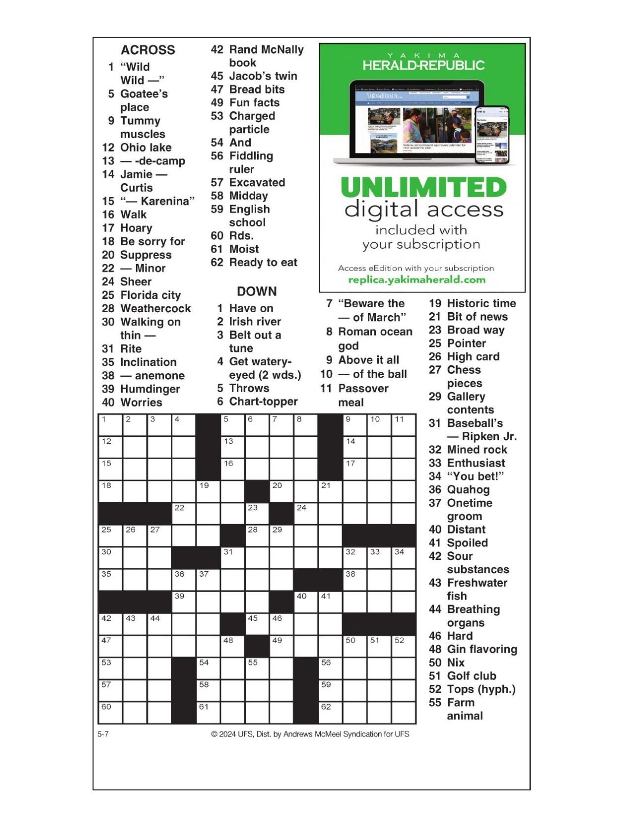 AM Crossword: May 7 2024 Crosswords yakimaherald com