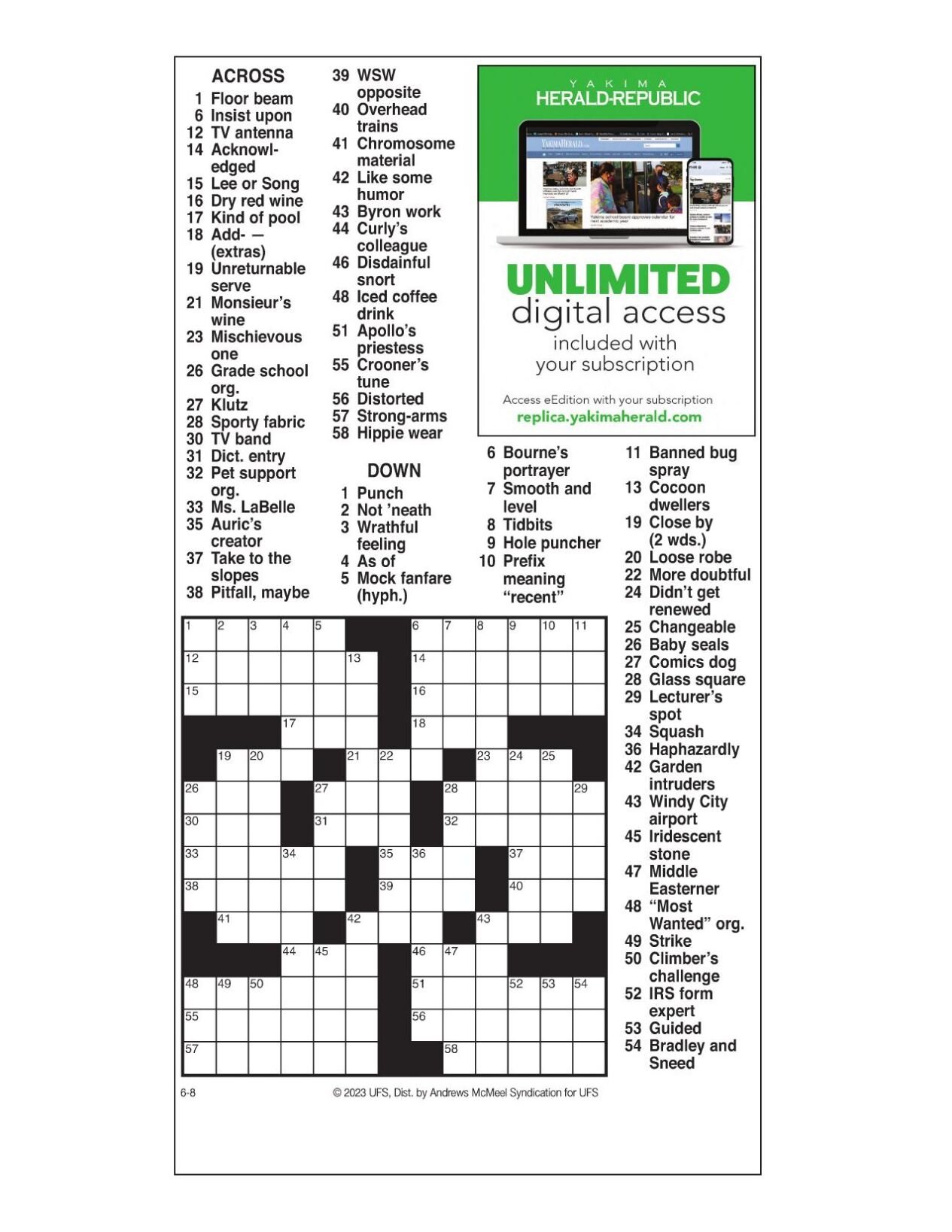 AM Crossword: June 8 2023 Crosswords yakimaherald com