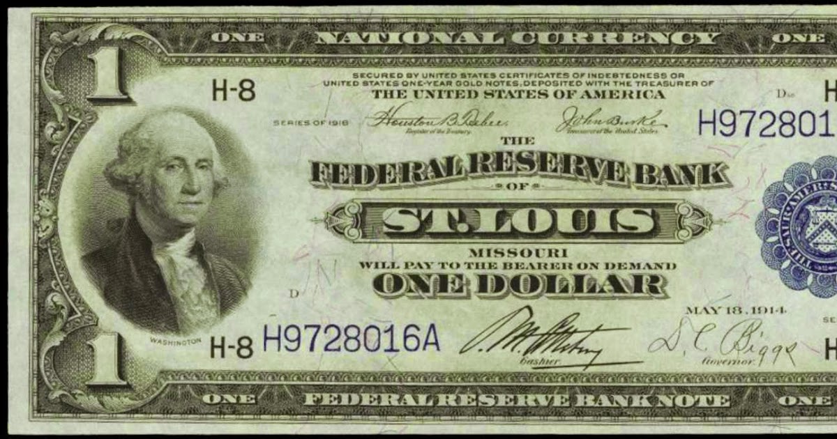 One Dollar Federal Reserve Bank Note 1918 St Louis World Banknotes
