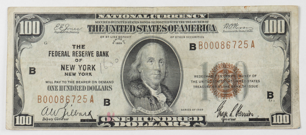 1929 $100 One Hundred Dollars U S National Currency Bank Note with