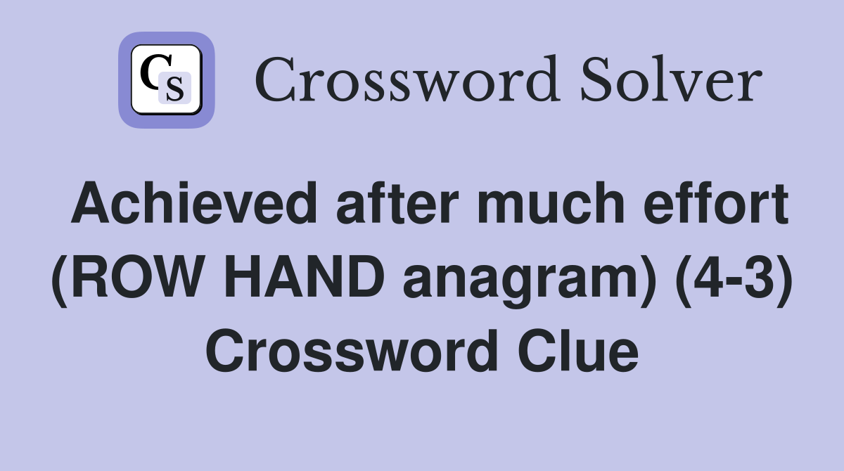 Achieved after much effort (ROW HAND anagram) (4 3) Crossword Clue