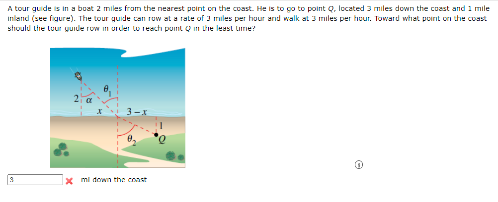 Solved A tour guide is in a boat 2 miles from the nearest Chegg com