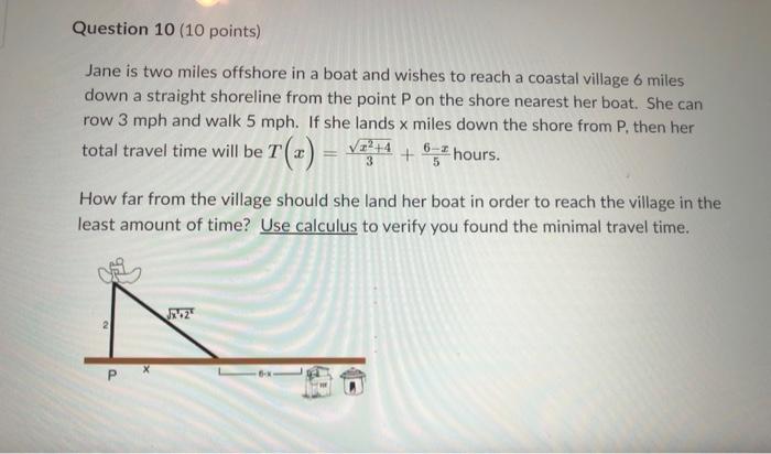 Solved Jane is two miles offshore in a boat and wishes to Chegg com