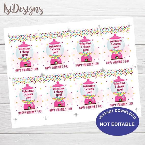 PRINTABLE VALENTINE I CHEWS You Tags or Stickers Bubble Gum Etsy
