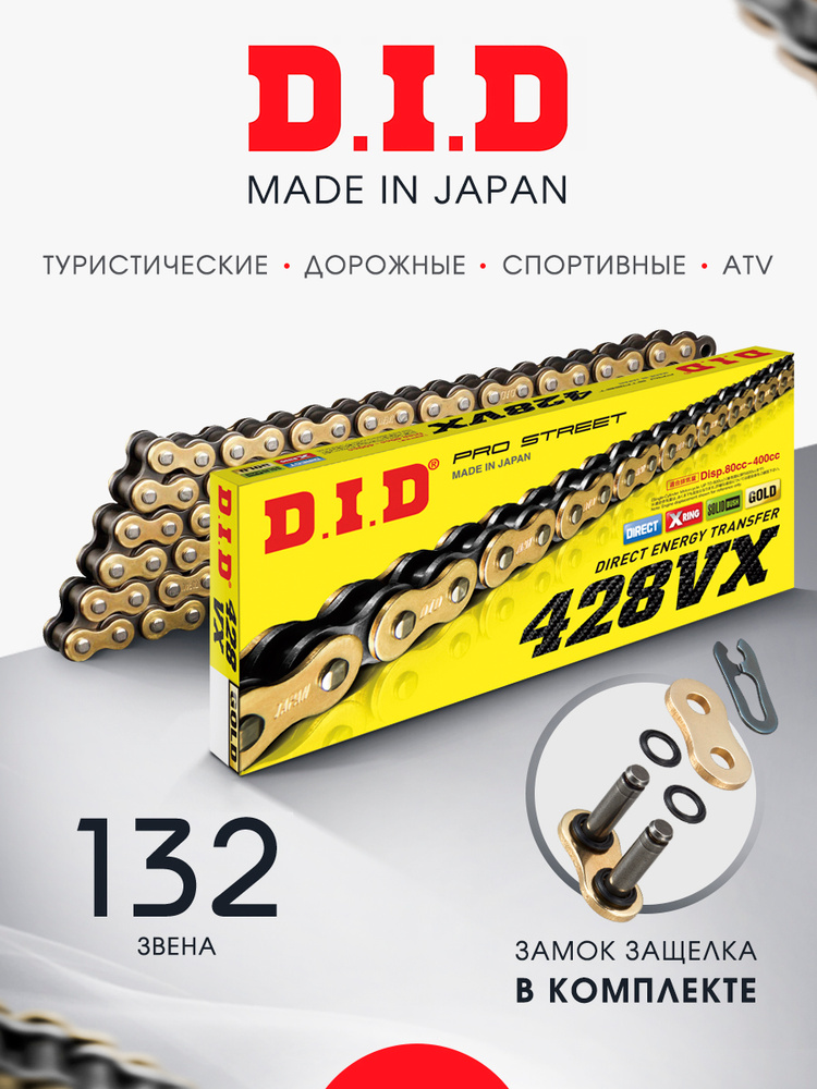 Цепь DID 428VX G B X Ring золотая 132 звена купить c доставкой на OZON