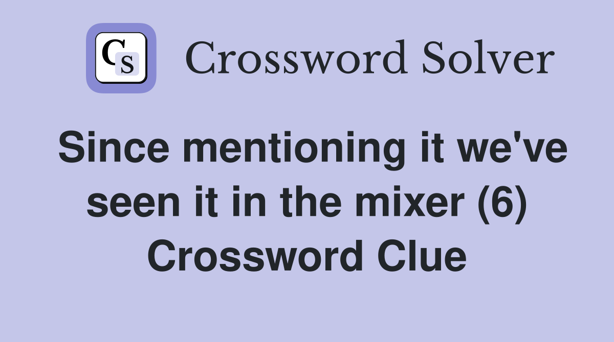 Since mentioning it we #39 ve seen it in the mixer (6) Crossword Clue