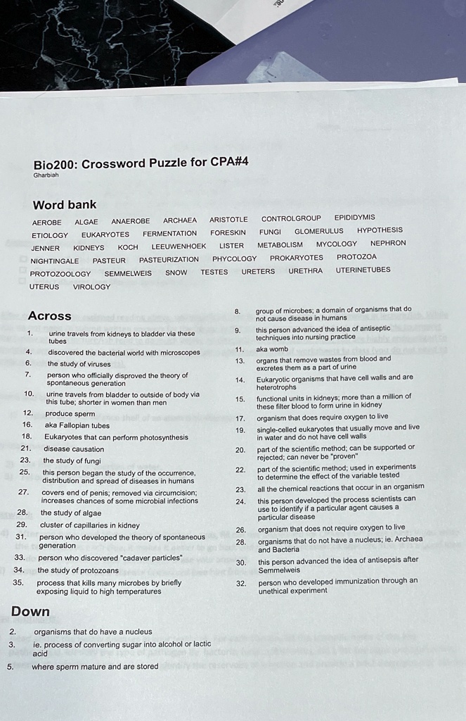 bio2oo crossword puzzle for cpa4 chniah word bank anaerobe archaea