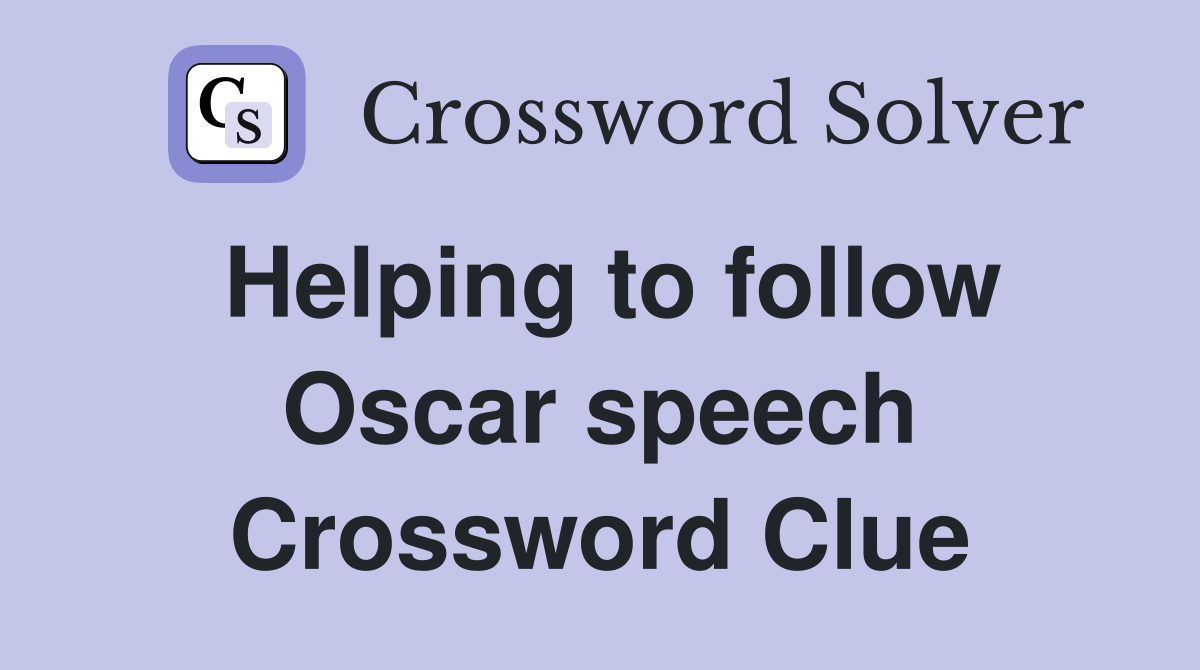 Helping to follow Oscar speech Crossword Clue Answers Crossword Solver