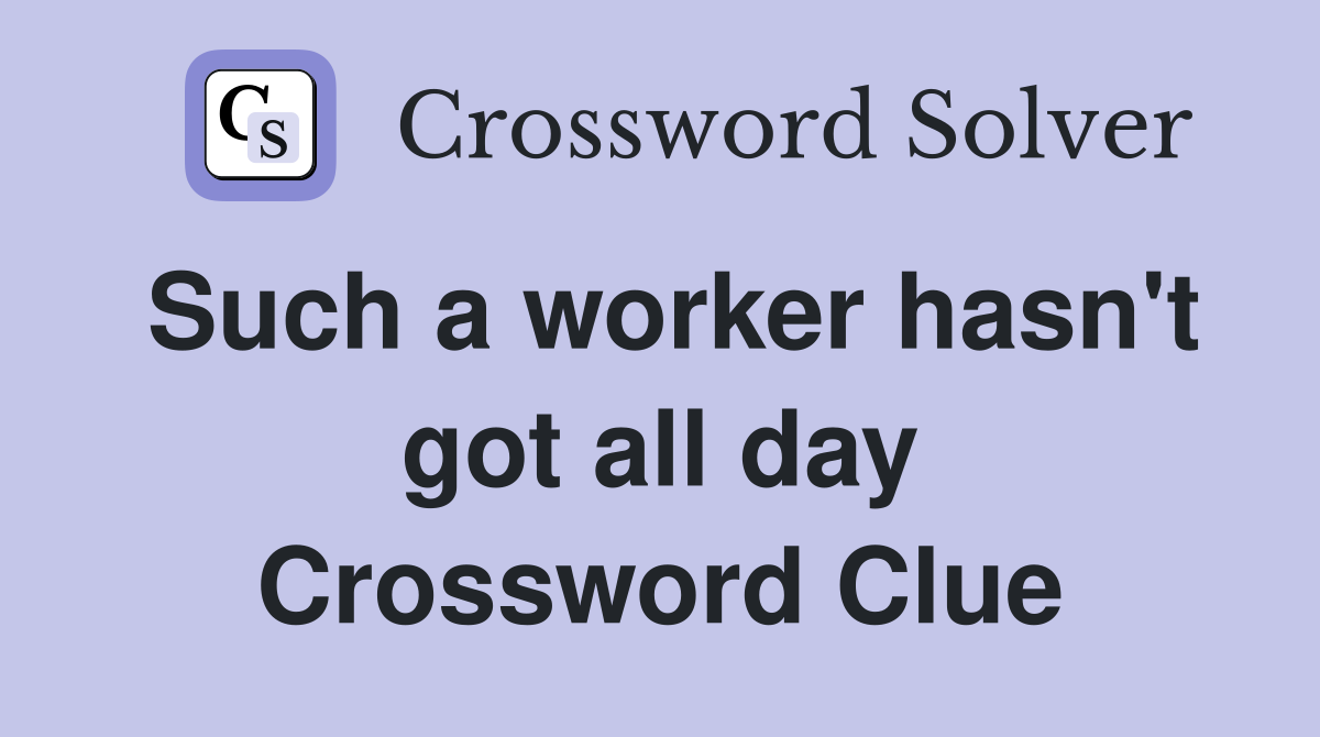 Such a worker hasn #39 t got all day Crossword Clue Answers Crossword