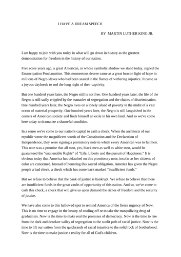 Dr MARTIN LUTHER KING Jr I HAVE A DREAM PDF