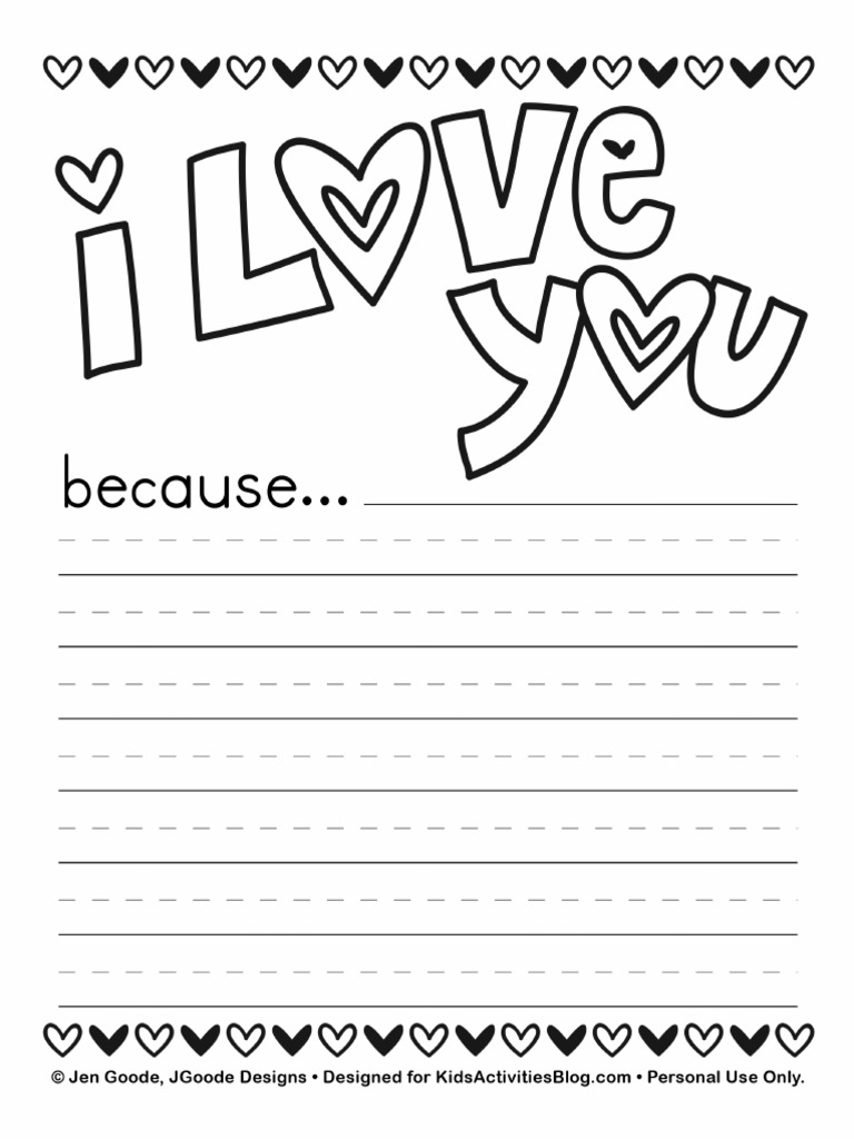 Printable I Love You Template: Cute I Love You Because Activity